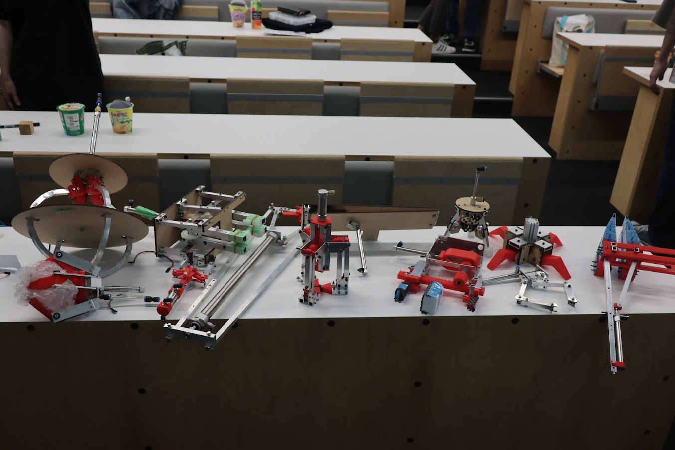 じゃがりこ・木のブロック・マジックペン・単2電池といった様々な形状・重量の対象ワークを掴むことを目標とし、把持性能・加工精度・デザイン性の3項目で評価がなされ、その総合点で競いました。