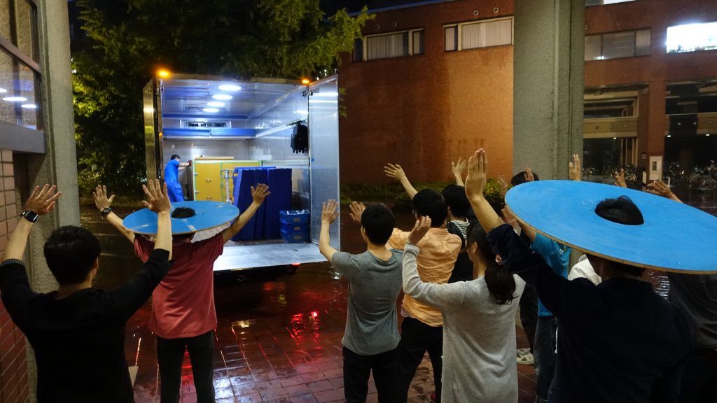 雨が降っている中で梱包箱やロボットが濡れないように運ぶのは大変でしたが無事ForteFibreの一年間の集大成はトラックに積み込まれ、旅立って行きました。