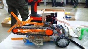 コントローラーで操作する市販のキットを改造して行う、新入生がものづくりに興味を持つための大会です。