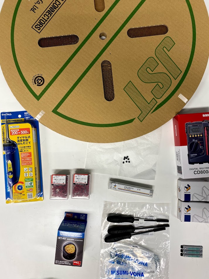 でかい、とにかくでかいです。なんだこれは?と疑問に思うひともいることでしょう。これはXHコネクタ作成に必要なXHコンタクトで、この円盤の中に8,000個入っています。この個数があれば、少なくとも5年間は在庫に困ることは無いでしょう。学生支援をしていただいた株式会社ミスミ様に感謝です。