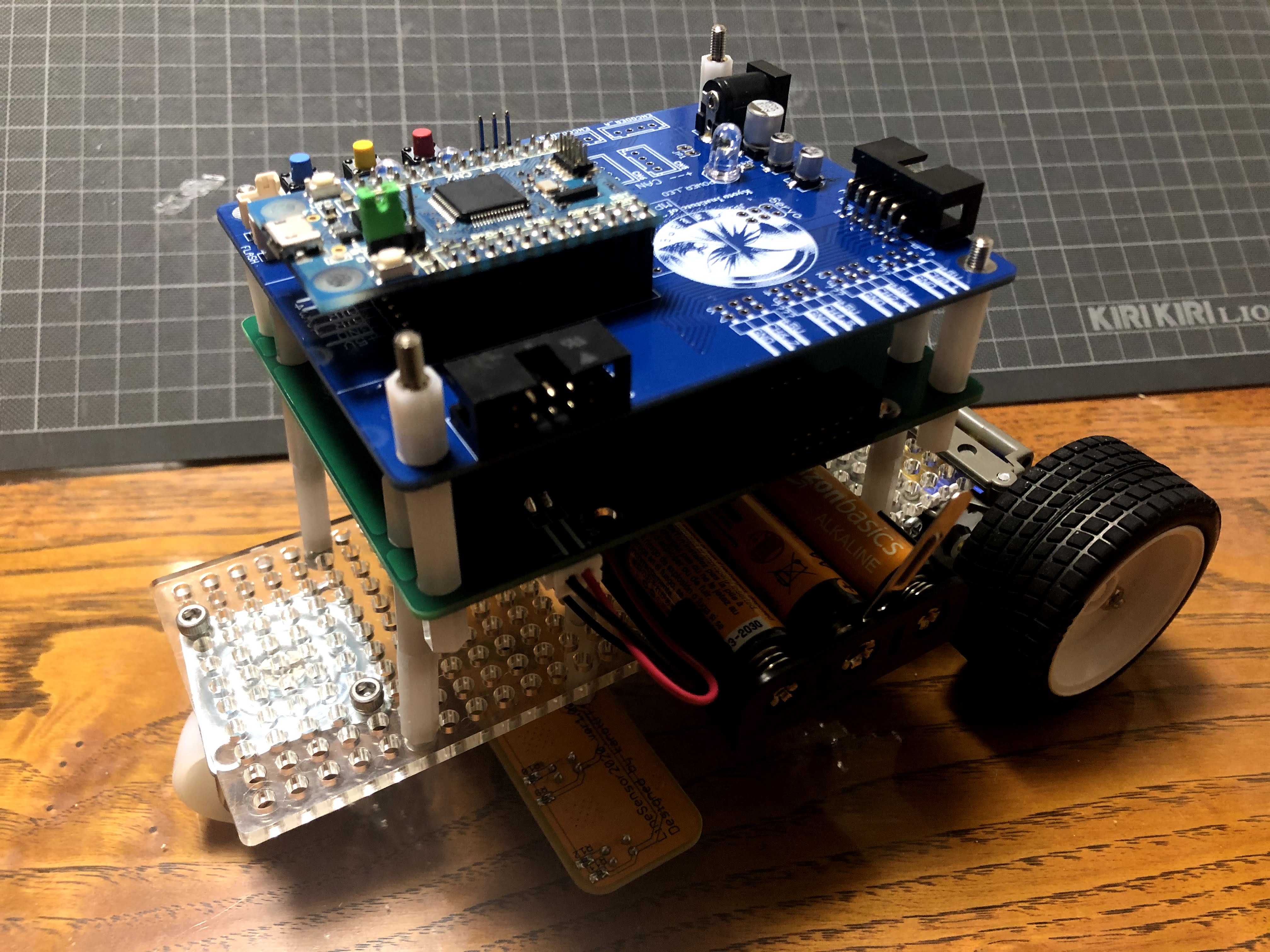 感染症の影響でまだまだいつも通りの活動ができていえるとは言えない状況が続いています。例年通りだと1回生には大学に来て実際にロボットを動かしてもらうことをしていたのですが、今年は上回生が準備したライントレースロボットのキットを各自持って帰ってもらい、自宅でロボットを動かしてもらうという試みをしました。