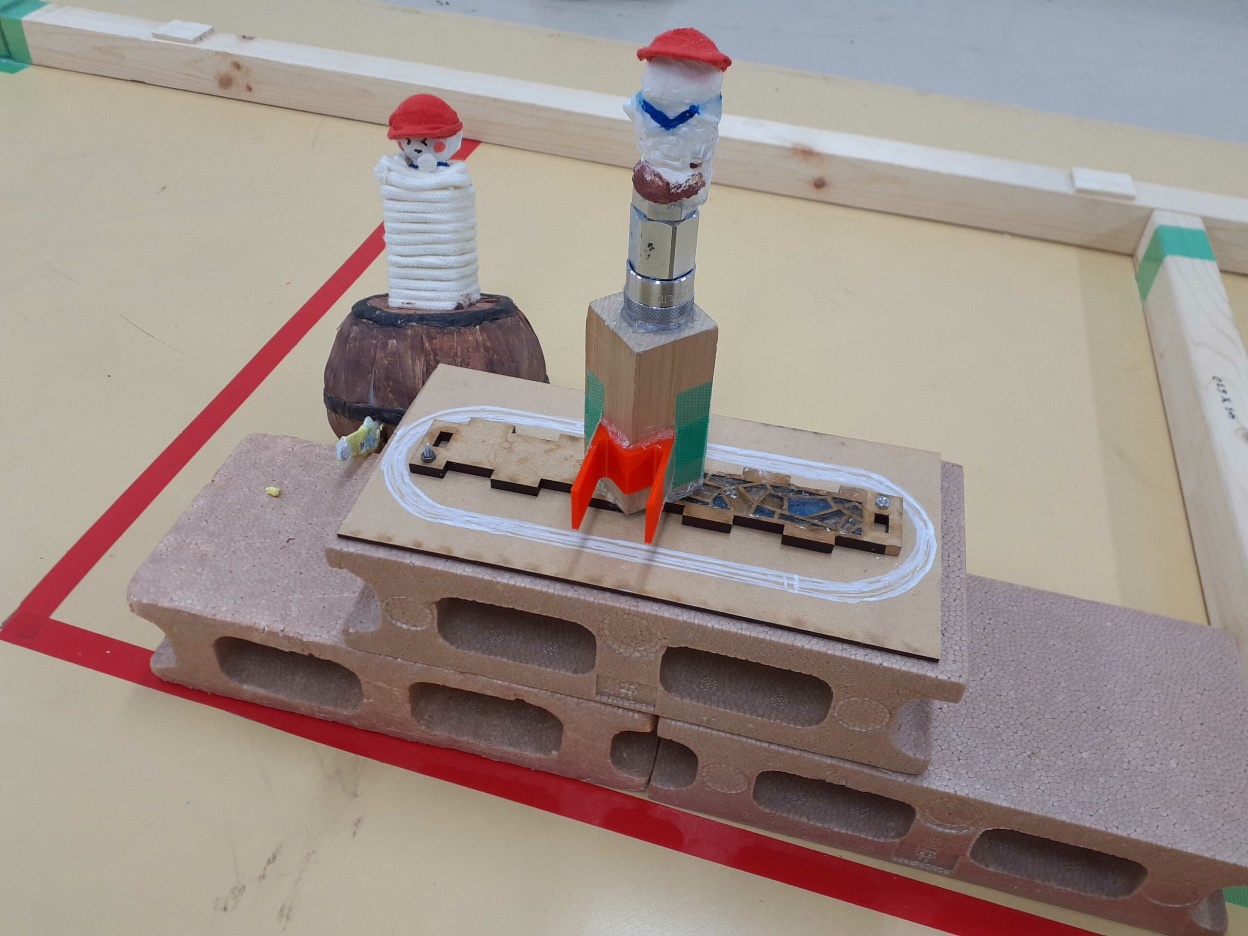 このちっこくて縛られているやつが、最初のトロフィー案でした。可愛くて個人的には気に入っていたのですが、少し大きくて手動機が持てるサイズを超えていたので急遽右のトロフィーを採用したという裏話があります。